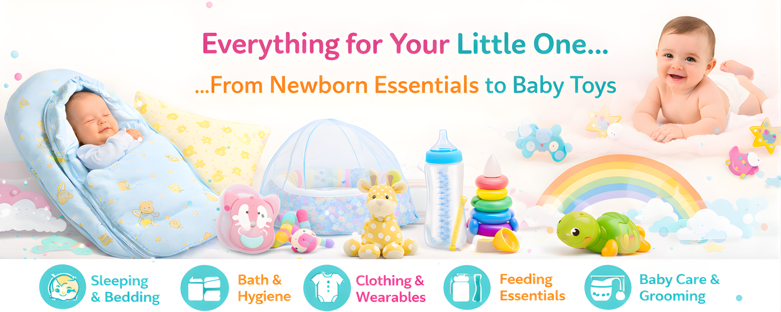 Explore our wide range of newborn essentials, baby care products, and toys. Find everything your little one needs in just a few clicks.